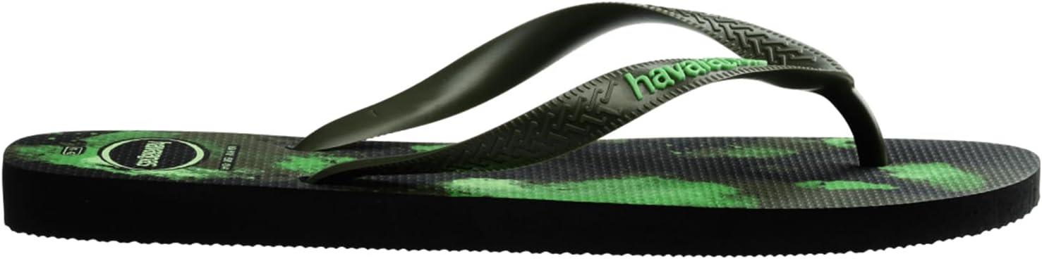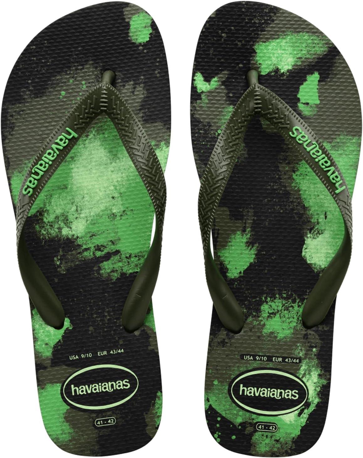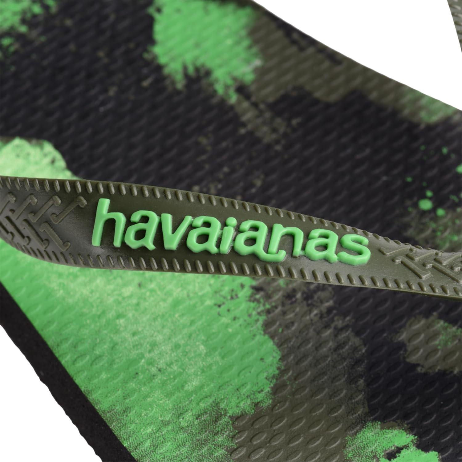 The Havaianas Kids Top Camo Flip Flop Sandal is an iconic summer staple! This signature style will take them through beach days, pool days, and lazy hang around the neighborhood days! This style runs one size smaller than regular Havaianas sizing. Brand suggests sizing up from your normal size. Slip-on sandals showcase a classic round-toe silhouette, and open three-point construction. Signature cushioned footbed with textured rice pattern. Rubber outsole keeps them comfy and stable. Made in Brazil.