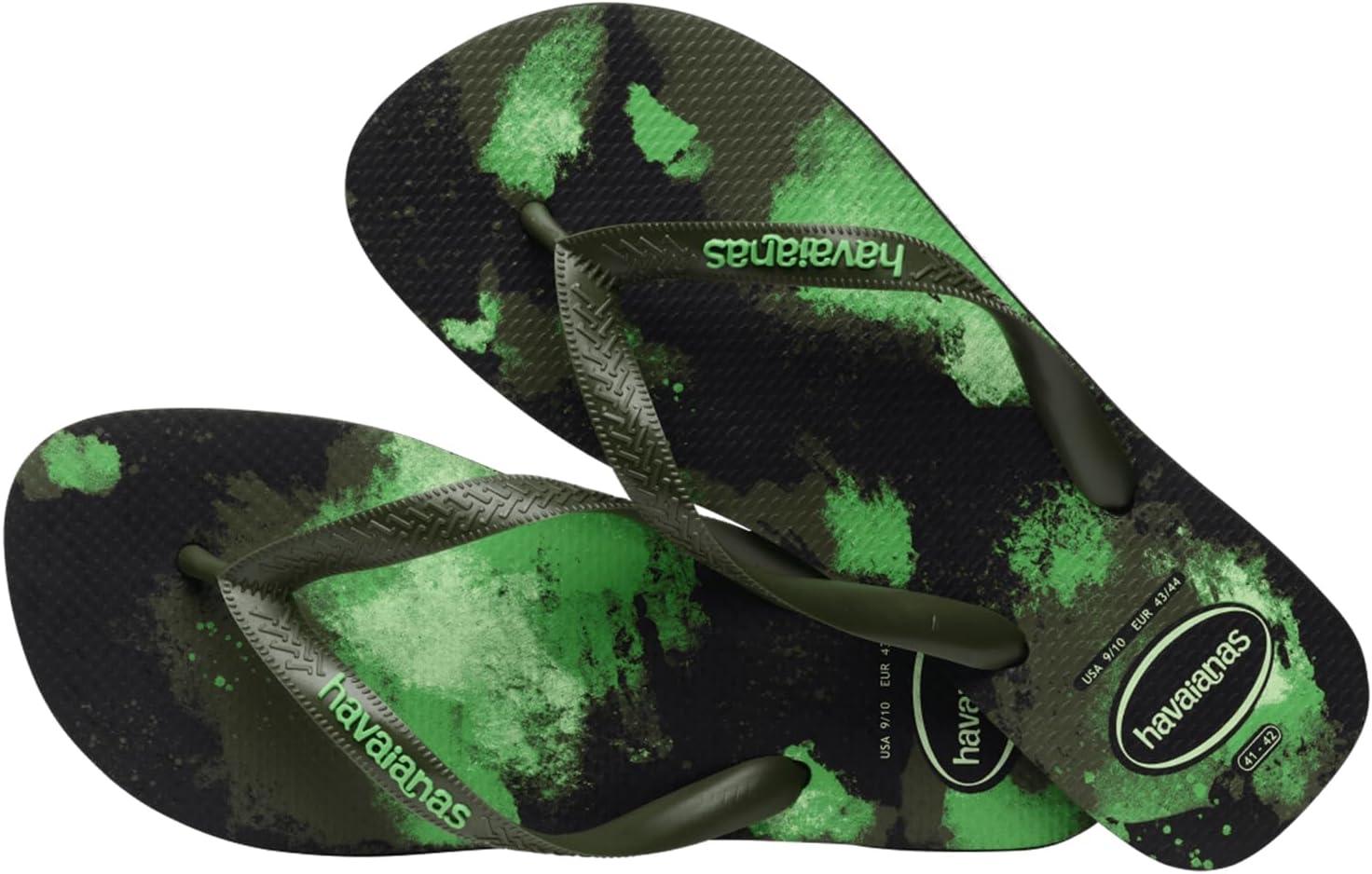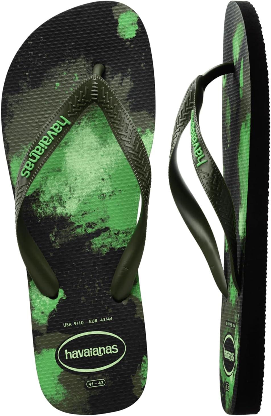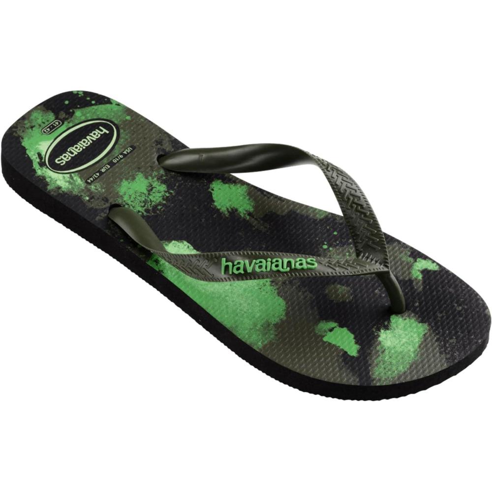 The Havaianas Kids Top Camo Flip Flop Sandal is an iconic summer staple! This signature style will take them through beach days, pool days, and lazy hang around the neighborhood days! This style runs one size smaller than regular Havaianas sizing. Brand suggests sizing up from your normal size. Slip-on sandals showcase a classic round-toe silhouette, and open three-point construction. Signature cushioned footbed with textured rice pattern. Rubber outsole keeps them comfy and stable. Made in Brazil.