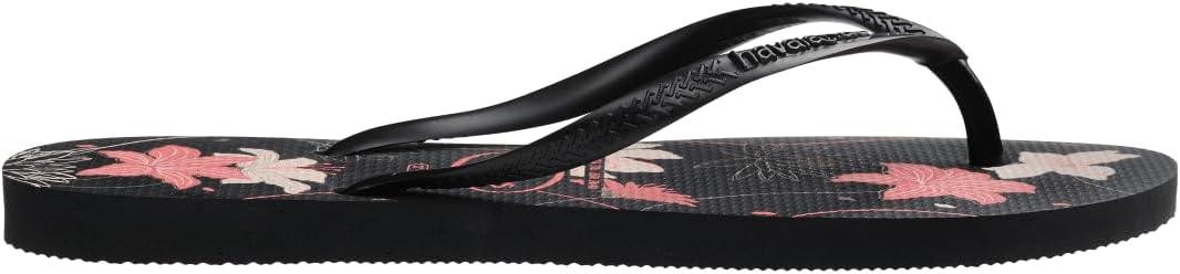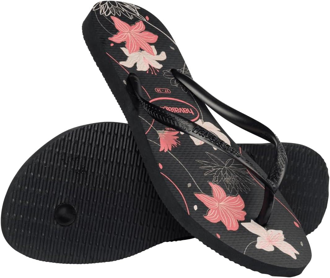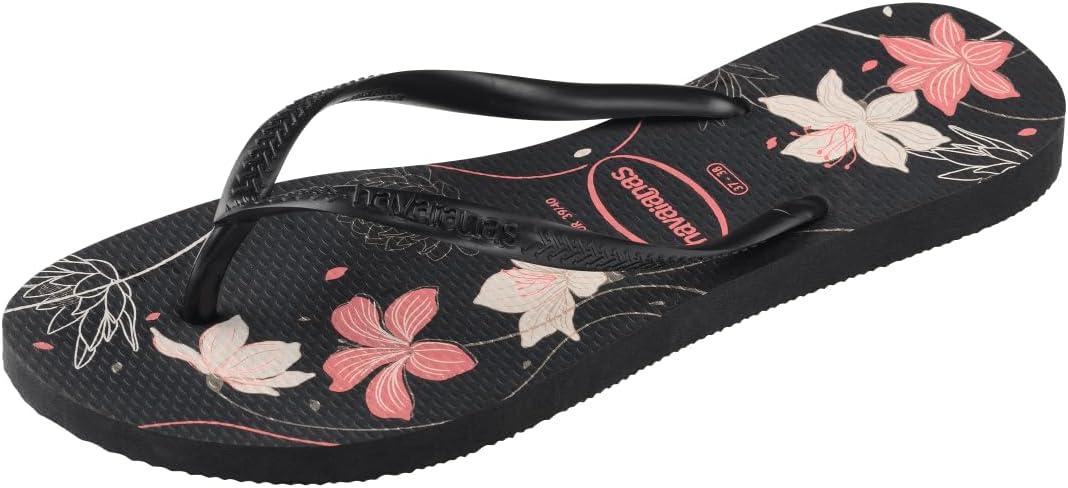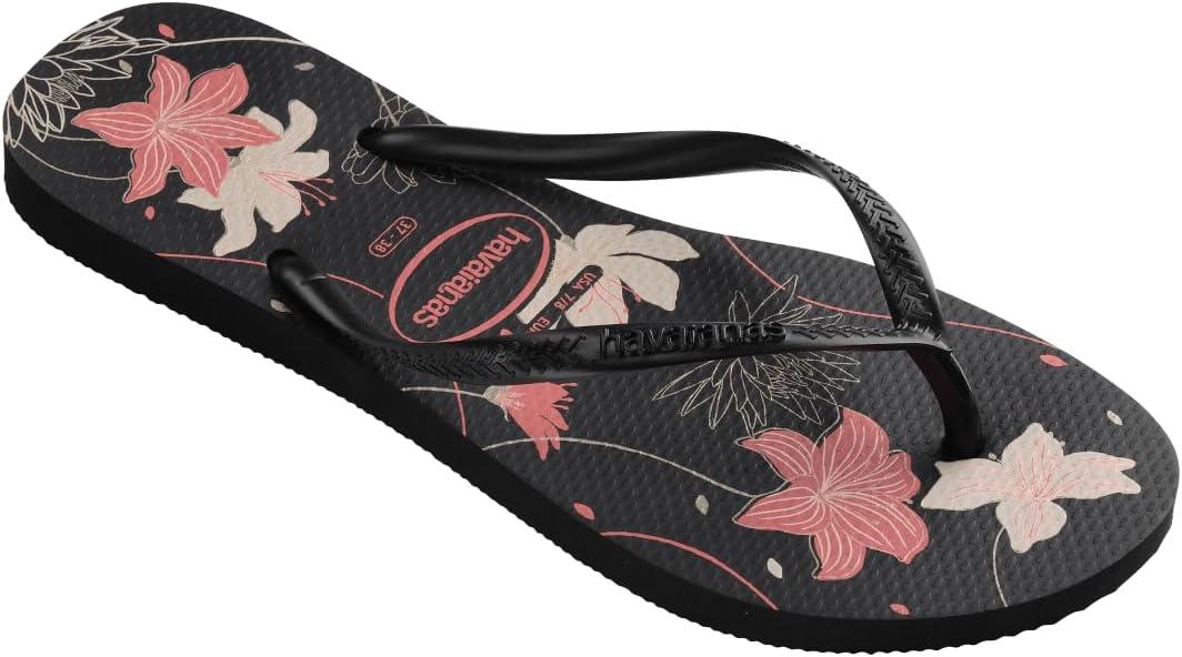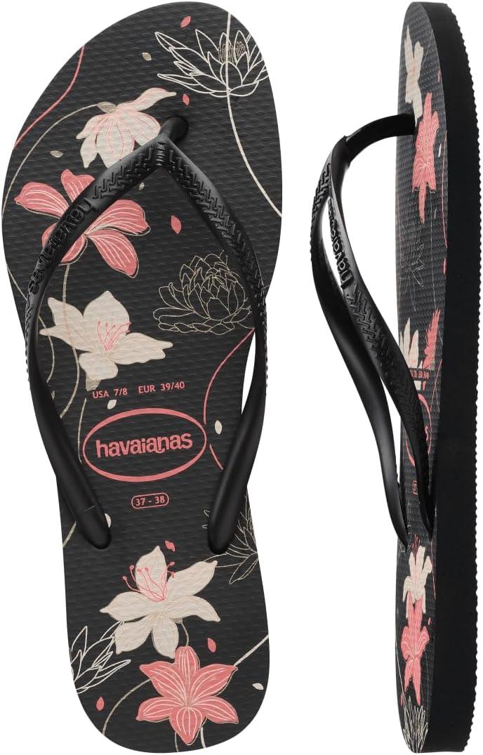 “Delicate and romantic, the Havaianas Slim Organic flip-flop is simply one of our most classic models. Slim, with a non-slip thinner sole and straps, this sandal is elevated with the sophistication of metallic-finish straps. With timeless floral prints in a metallic touch, the slipper is available in three colors: choose your favorite. “