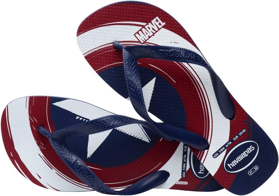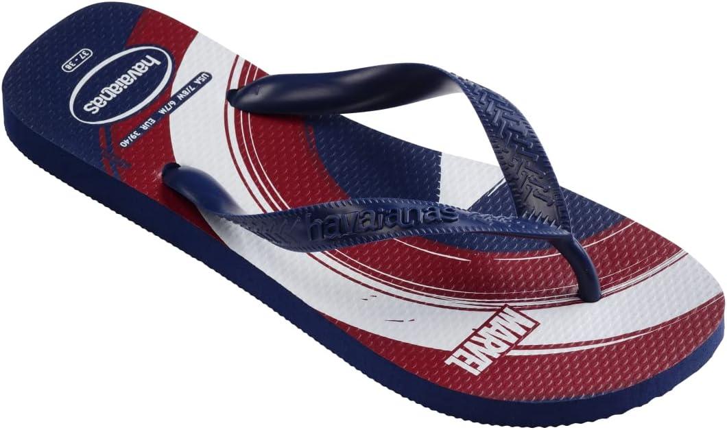Show off your love for your favorite hero with these Top Marvel logo flip flop sandals