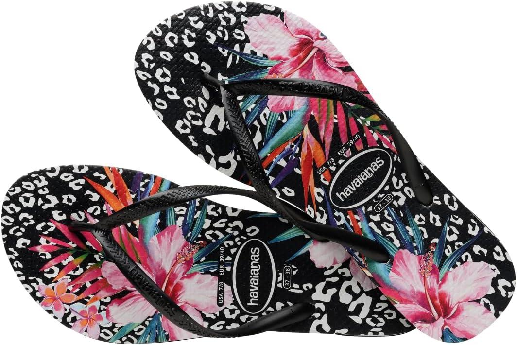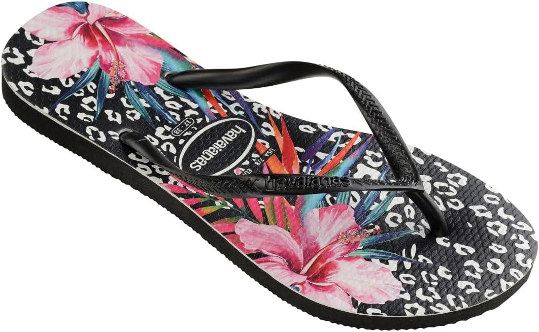 Make your way to the pool or beach with the Havaianas Slim Animal Floral Flip Flops for kids. These kids' summer sandals and flip flops have a thong-style design with a cushioned footbed and a textured rice pattern. These features will keep your kids from slipping as they run through the waterpark, walk at the pool, or stroll along the beach in these shoes. The rubber flip flop soles are made in Brazil and are made to withstand any summer adventure. Your kids will feel fashionable as they lounge in these floral and cheetah print sandals and water shoes. These sandals for kids and toddlers are a great gift for parents looking for their kids' summer vacation essentials.