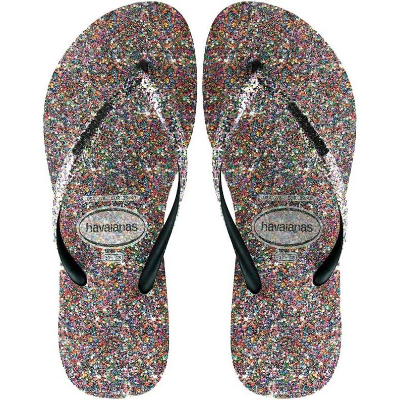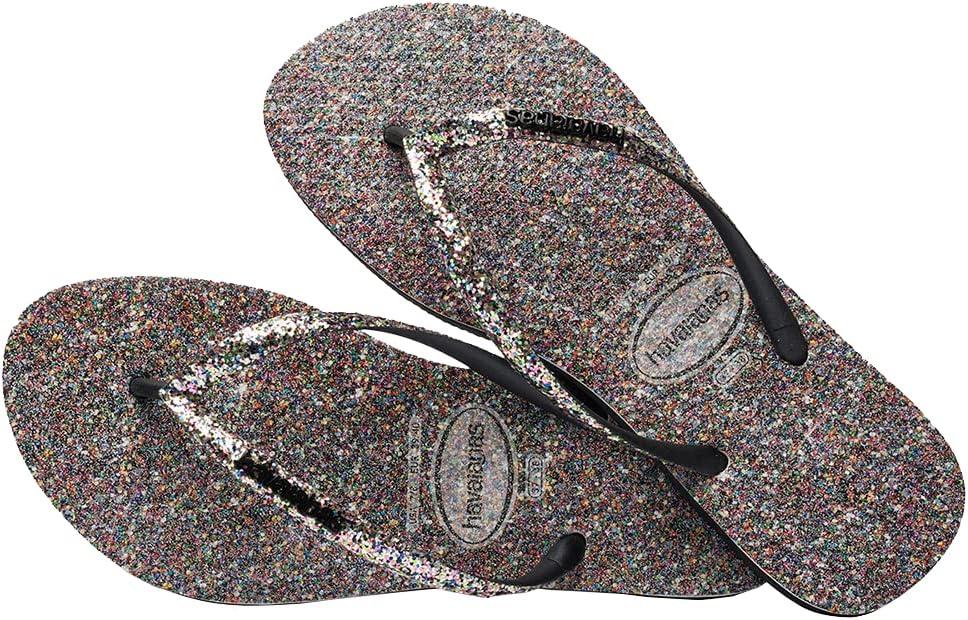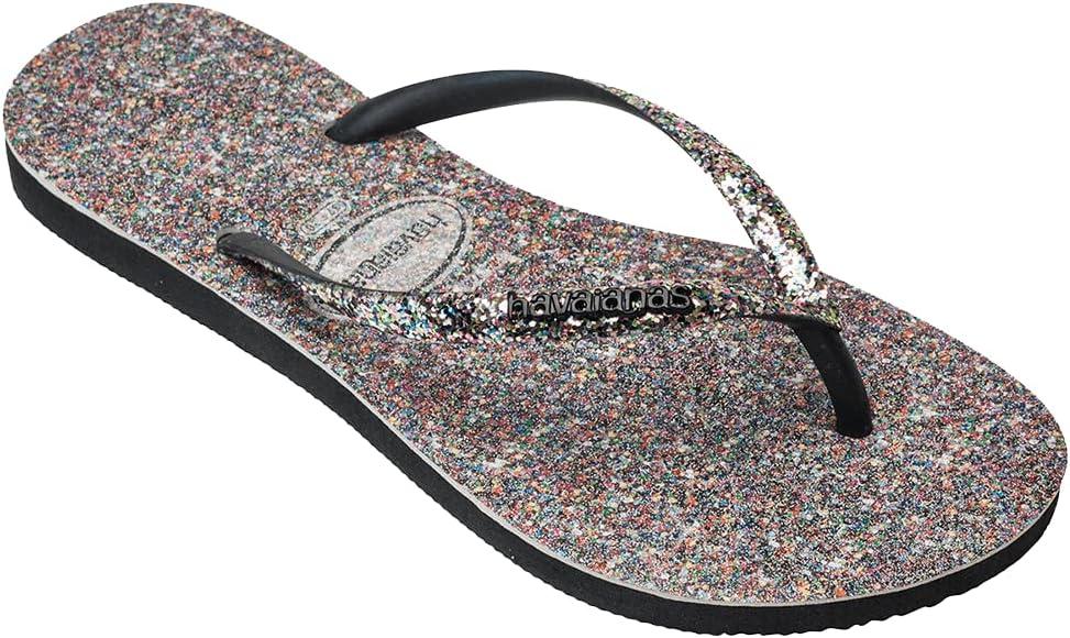 Get ready to party in the Slim Carnaval! Featuring a glitter sole and multi-color glitter straps, you'll be reminiscent of the glitter-clad revelers of Brazil's Carnaval. Plus, Havaianas' signature sole will keep feet cool and comfortable from day to night to day.