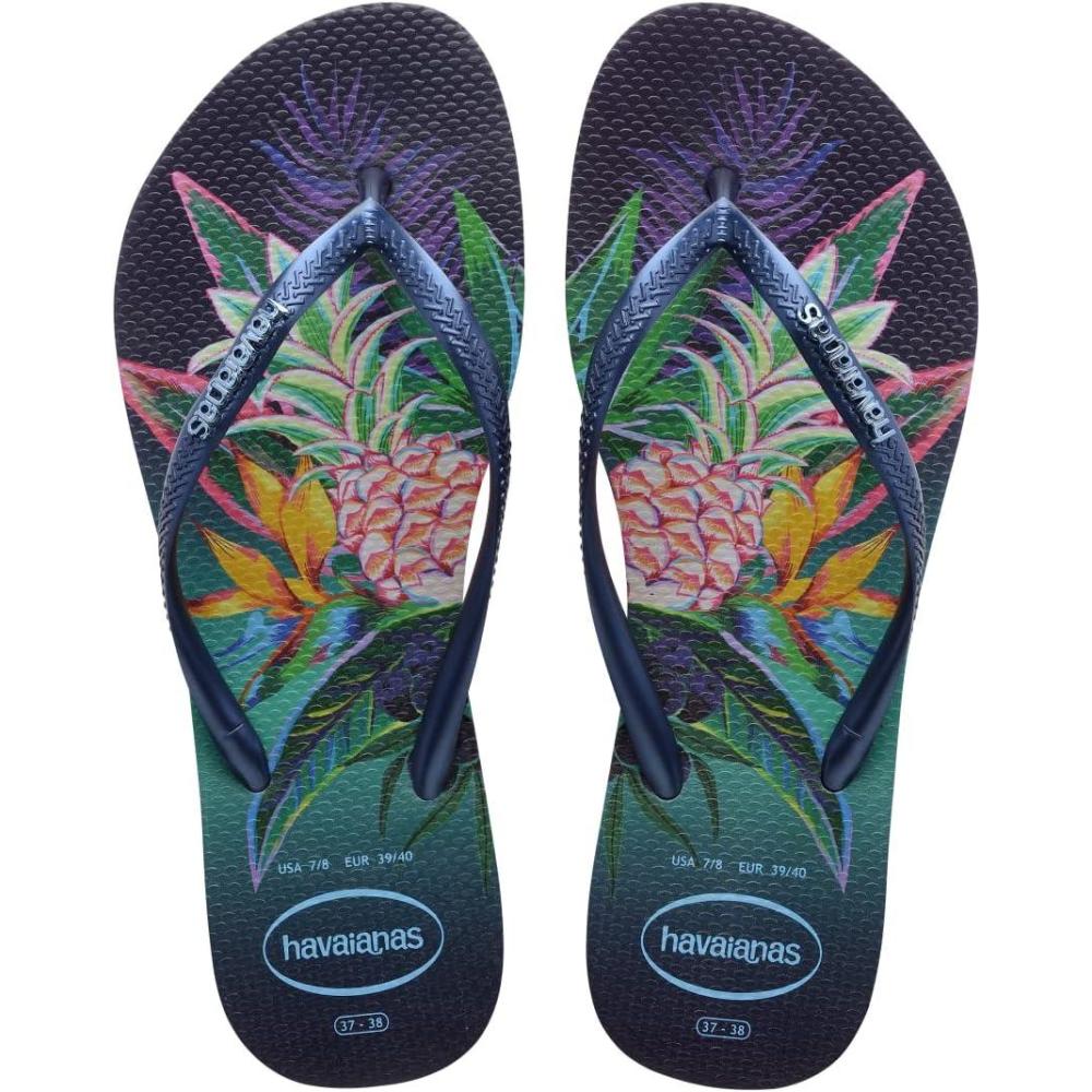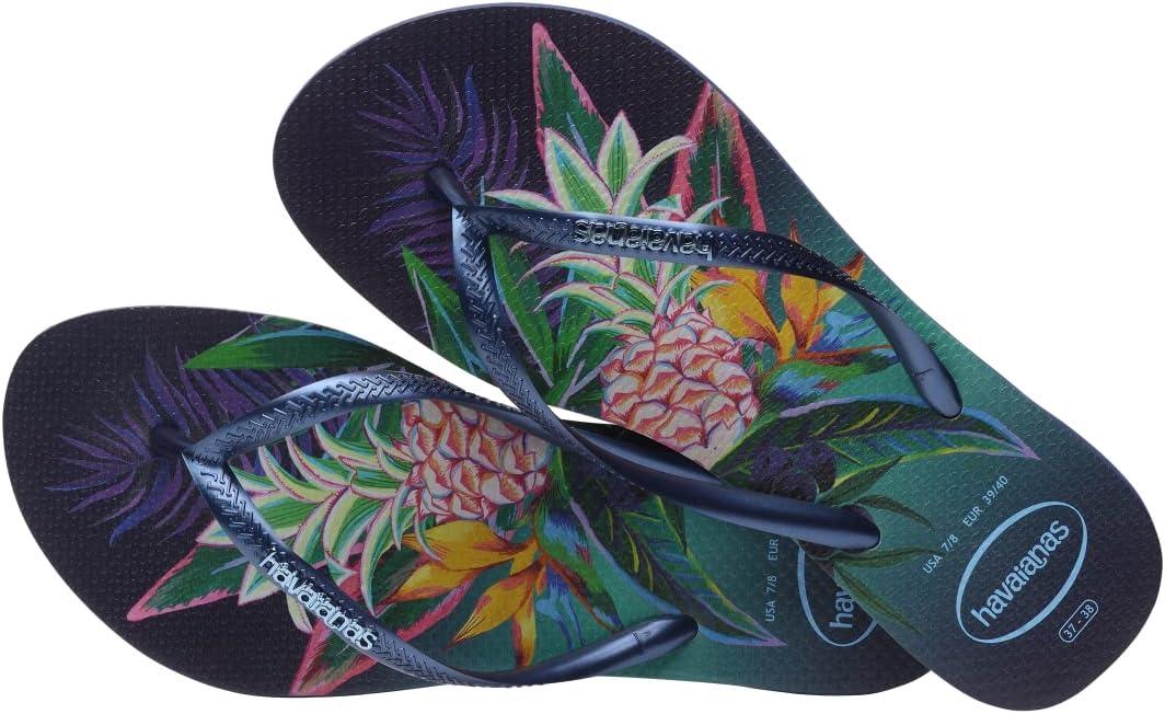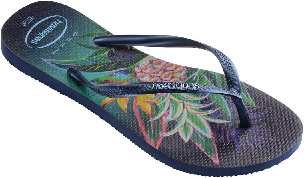 Havaianas Women’s Slim Tropical Flip Flop Sandal(Navy Blue)