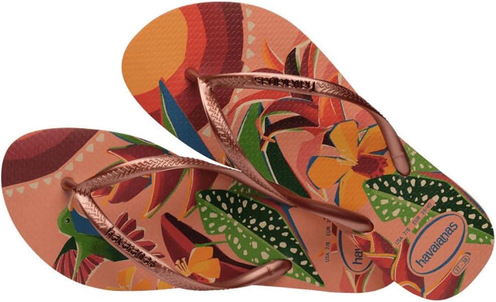 The Slim Tropical Havaianas has the shape that everyone loves, with its thinner and delicate straps, plus a print of very tropical elements from Brazil's fauna and flora. It brings all the freshness and colors of summer to your feet!